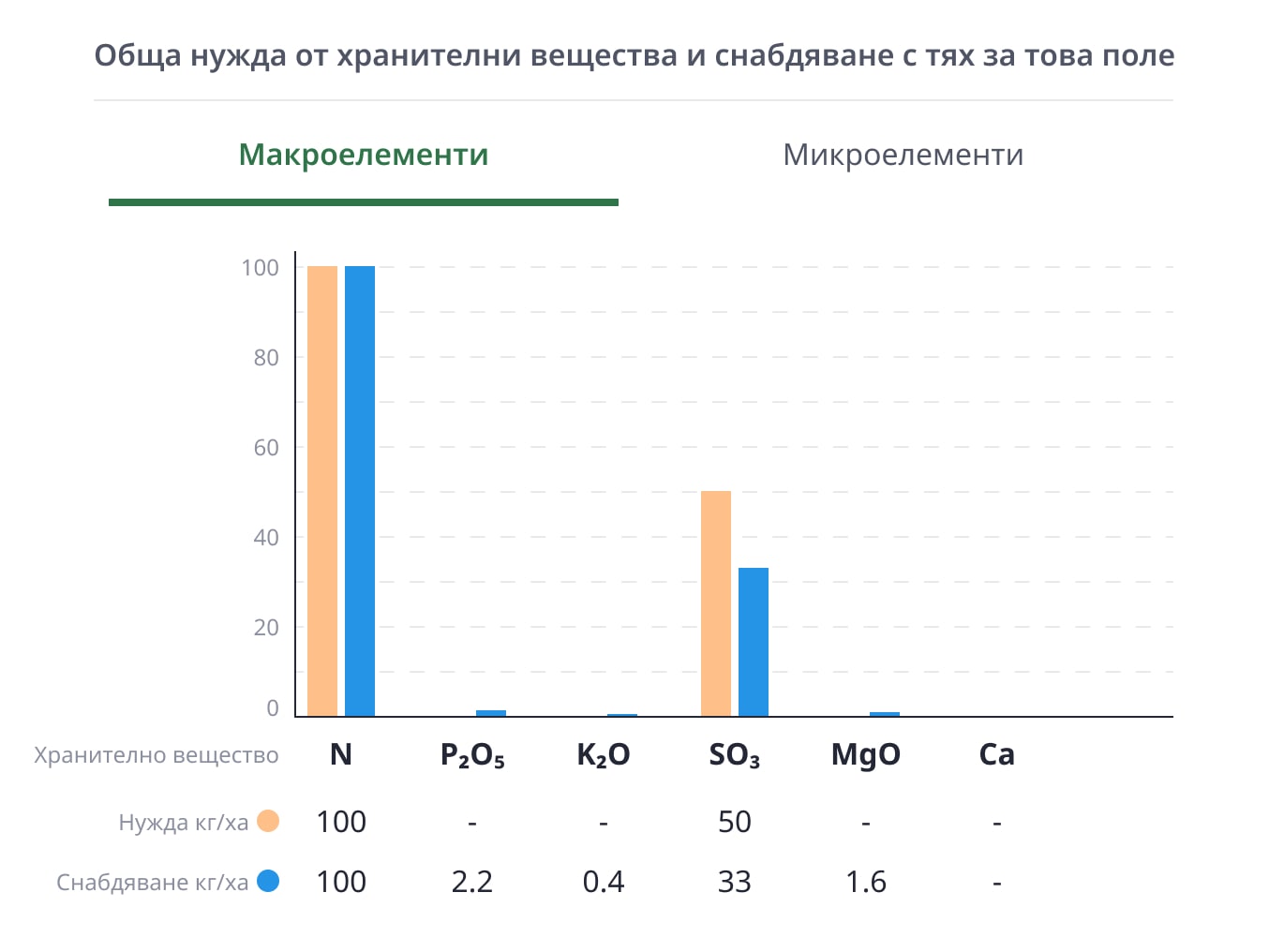 Atfarm автоматично изчислява необходимите разпределения на хранителните вещества за култура и поле.